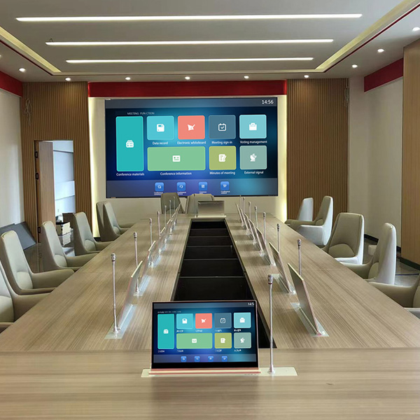 يدعم النظام الإدارة المتزامنة لقاعات اجتماعات متعددة ومؤتمرات متعددة. من خلال طريقة تفاعل الصفحة المرئية، فإنها تجعل حجز المؤتمر، وتكوين المؤتمر، وإعداد المشكلات، والعمليات المحددة مسبقًا لترتيب المقاعد أكثر كفاءة، وتحسين كفاءة إنشاء وتكوين مؤتمرات غير ورقية، وتعزيز قدرة تفاعل المعلومات، وإدارة البيانات أثناء الاجتماع، وأرشفة البيانات والنسخ الاحتياطي الأمني بعد الاجتماع. علاوة على ذلك، فهو يتمتع بقدرات إدارة المؤتمرات. عند استخدامها كغرفة اجتماعات عادية، فإنها لا تتطلب إنشاءات متكررة ويمكن استخدامها مباشرة. في نظام المؤتمرات غير الورقية، يمكن توصيل وحدة الميكروفون وصوت المؤتمر الخاص بمحطة سطح المكتب المدمجة بمحطة مؤتمرات الفيديو.
